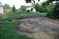 W dniu wczorajszym (tj. 8 czerwca) zostały ścięte dęby rosnące na tej działce pod liniami elektrycznymi, a w dniu następnym zostały usunięte karpy. Drobne gałęzie zostaną przeznaczone na ognisko zorganizowane dla mieszkańców, a grubsze pnie czekają na pomysł w jaki sposób mogą zostać wykorzystane.