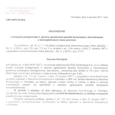 Ogłoszenie Starosty Ostrołęckiego z dnia 10 maja 2016 opublikowane przez: Sołtys w kategorii: Blog. Starostwo, dnia: środa, 11 maj 2016 Ogłoszenie GBN.6853.11.2016